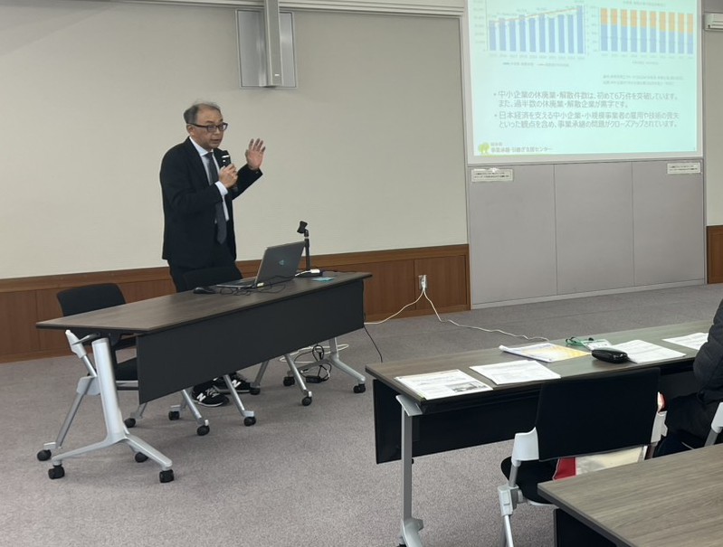13名参加のもと「金融機関等から見た成功する創業のポイント」をテーマに、当センターの中村サブマネージャーが講演しました。