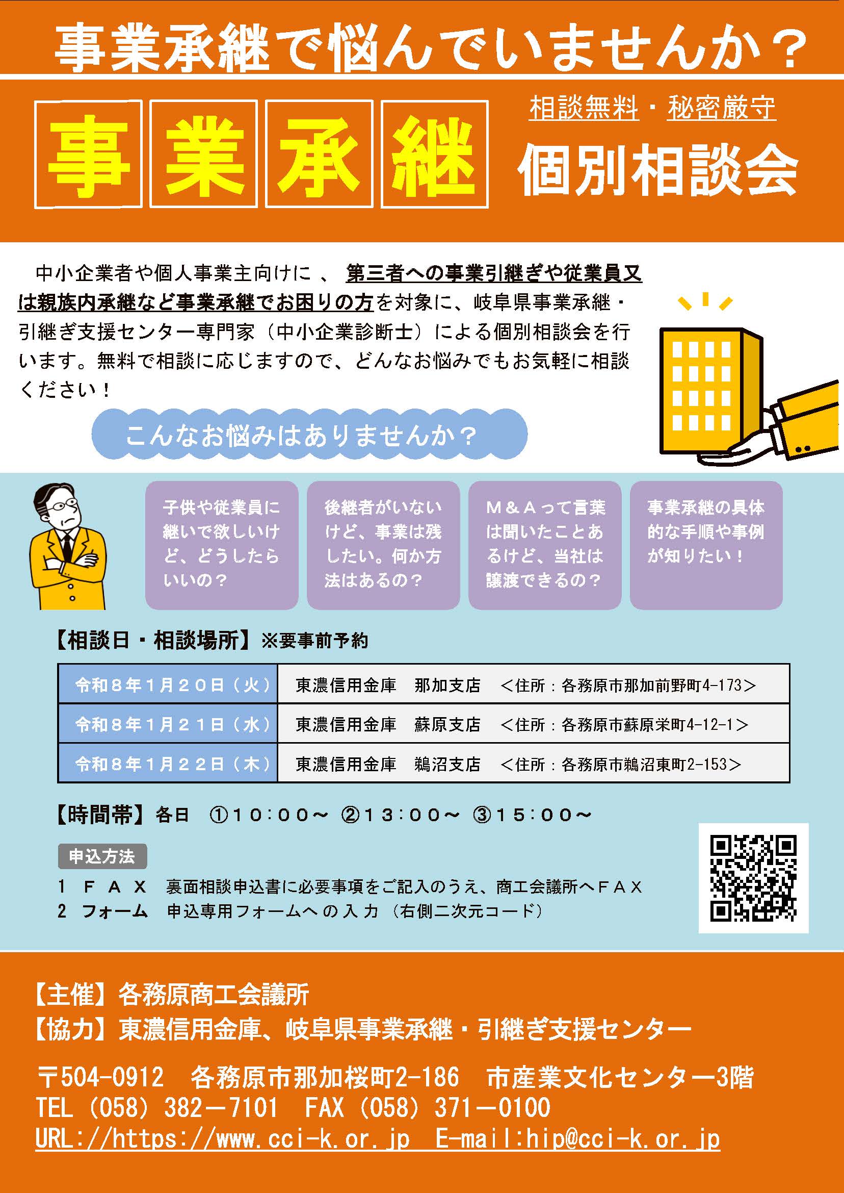 各務原商工会議所主催の事業承継個別相談会が開催されます。