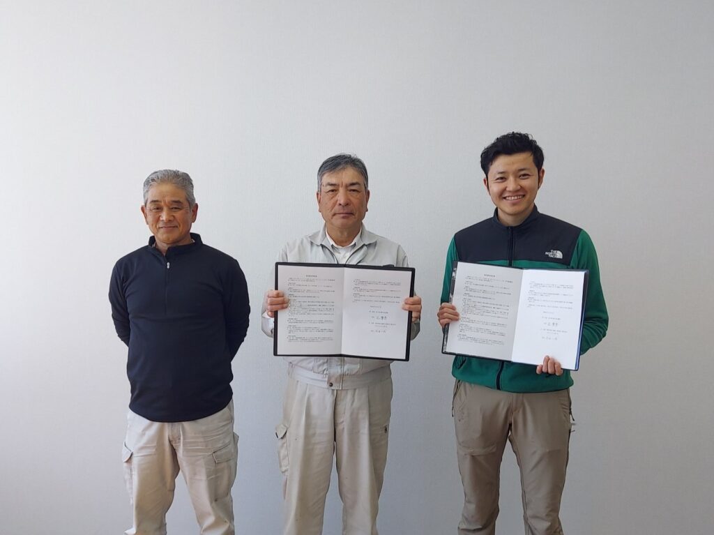 令和8年3月17日(火)、ぎふアグリチャレンジ支援センター及び当センター立会いのもと、安八町の農業経営者である辻 繁秀(経営移譲者)さん及び共同経営者の森 利夫さんと、新規就農者である永田 一成(後継者)さんとの間で「経営継承契約書」の締結が行われました。(事業譲渡日:令和8年4月1日)